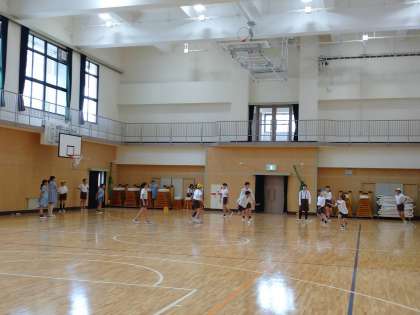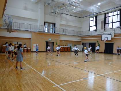 放課後の体育館開放で、6年生がドッジボールをしていました。今日は運動会の練習をたくさんしているのにまだまだ元気いっぱいです。