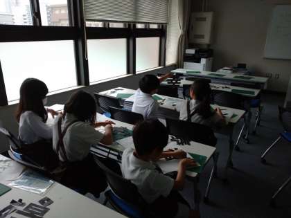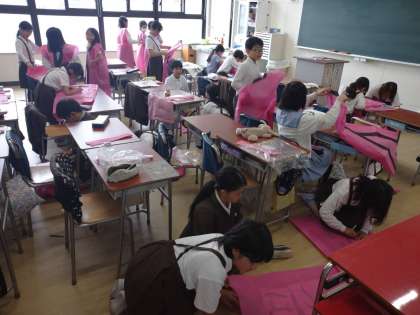 4・5・6年生は運動会の団体演技でハッピを着ます。背中に自分の名前を書くために、それぞれの学年で作業をしています。ハッピを着て踊る本番は、とても気合いが入りそうですね。