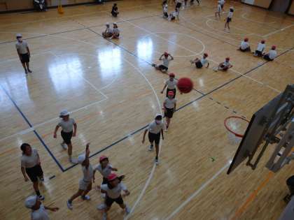 運動会が終わり、次はバスケットボールに取り組んでいます。フラッグをボールに持ちかえて、新鮮な気持ちで楽しみました。