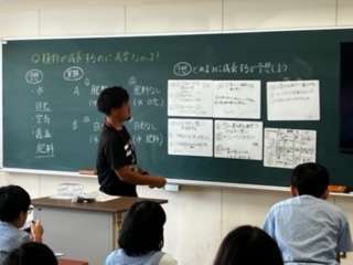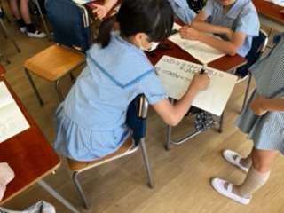 班で植物の成長に必要な条件を話し合っていました。話し合ったことをホワイトボードに書き、交流していました。前向きに取り組んでいた姿がすてきでした。
