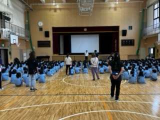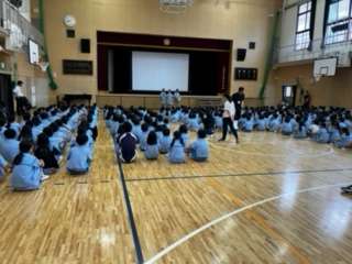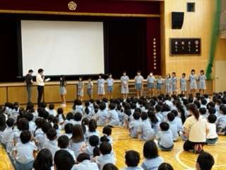 運営委員会の児童からユニセフ募金について、安全安心委員会の児童から、廊下・階段の歩き方についての話がありました。