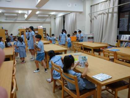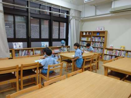 今日は雨からたくさん雨が降っていたので、休み時間の図書館開放にたくさんの子どもたちが本を読みに来ていました。