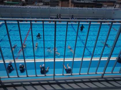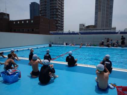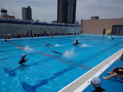 【4年生 体育】プール水泳 公開日 2024/06/20 更新日 2024/06/20 4年生 2回目のプール水泳でした。昨日とはうって変わっての、晴れ空。絶好のプール日和でした。 先生からけのびについて、丁寧に教えてもらい、試しにやってみるとたくさんの距離を進めることができました。また、今の段階でどれだけ泳げるか、コースに別れて泳いで確認しました。25mを泳ぎきろうとする子にむけて、大きな応援と拍手を送っていました。 いいね(0)