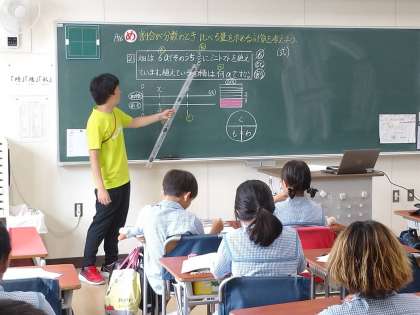 今日は割合が分数のとき、比べる量をどのように求めるか、線分図や「く・も・わ」の図をヒントに一生懸命考えていました。