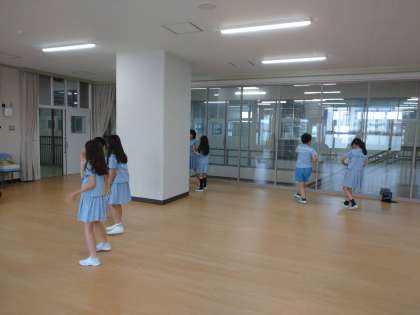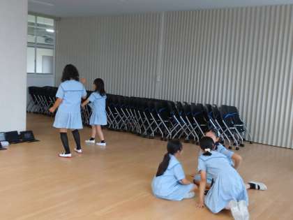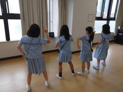 ダンスクラブは多目的ホールで、動画を見ながらグループごとに踊って練習していました。なかなか複雑な振り付けにもチャレンジしていました。