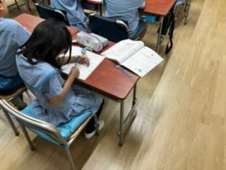 3けた−2けたの筆算の学習でした。一の位にも十のくらいにも繰り下がりがあったため、一つ一つの位の計算を確認しながら丁寧に行っていました。