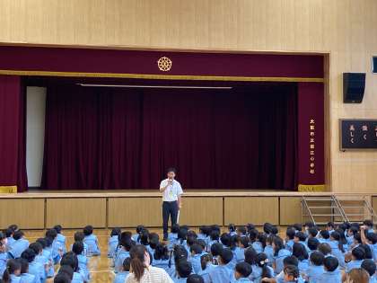 全校朝会(7月1日) 公開日 2024/07/01 更新日 2024/07/01 お知らせ 全児童そろって朝会を行いました。 准校長先生からは、まだまだ雨の日が続き傘を持ってくることが多くなるので、傘の扱い方に気をつけましょうというお話と今年も半分が終わり、折り返しがスタートしました。後半も頑張っていきましょう!というお話がありました。 当番の先生からは、先週の生活強調週間の振り返りとこれからも意識をもって続けていきましょうといったお話でした。 いいね(0)