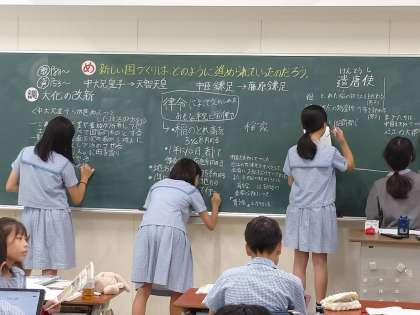 中国の影響を受けた新たな取り組みについて、調べたことを黒板いっぱいに詳しく書いていました。