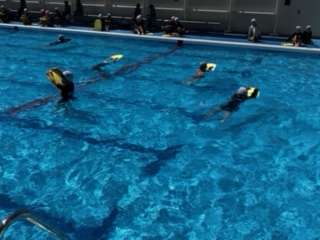 今日の水泳の時間は平泳ぎの練習をしていました。まずは歩きながら手のかきかたの練習、そしてビート板を持ってけりかたの練習をしました。先生の助言を聞くとともに、友達の泳ぎを見て、少しずつコツをつかんでいました。