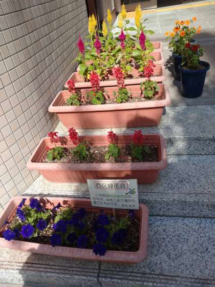 西区緑花会さまより、ペニチュア、サルビア、ケイトウ、ヒャクニチソウのお花を分けていただいております。