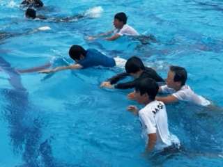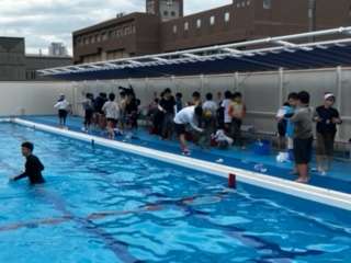 水の事故が増える季節です。実際に服を着た状態で、プールに入りました。動きづらさを肌で感じていました。ペットボトルやボールでうくことで、命を守るものになるということも体感できました。