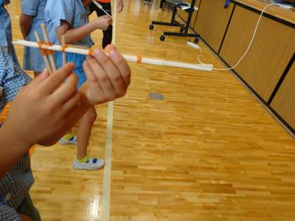 【3年生 学級活動】お楽しみ会 公開日 2024/07/16 更新日 2024/07/16 3年生 お楽しみ会として、射撃ゲームを楽しんでいました。手作りのゴム鉄砲を使って的に当てます、当たった人には、これまた手作りのぬり絵をプレゼントします。子どもたちのアイデアで、みんなが楽しめる時間となりました。 いいね(0)