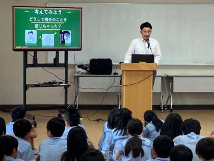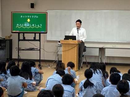 6年生を対象に非行防止教室が行われました。西警察署の方が来られて、SNSのトラブルに巻き込まれないために気をつけることを中心に話をされました。子どもたちは、興味をもってしっかりと話を聞くことができていました。