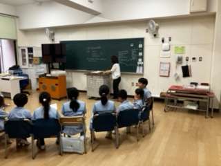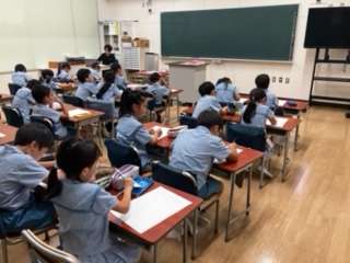 夏休みの宿題についてのお話や、お楽しみ会、班の友達へのメッセージを書いていました。