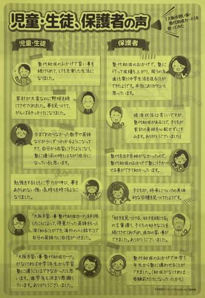 7月19日の午後に、関係機関より塾代助成の案内が届きました。