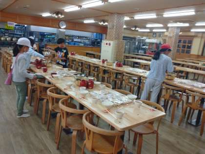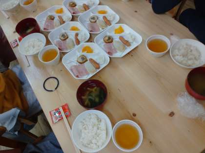 今朝も食柱が事前に準備をして、朝食をいただきました。たくさんのプログラムをこなすためには、しっかりエネルギーチャージをしないといけません。