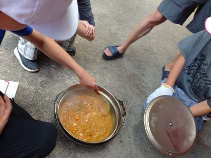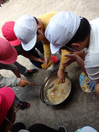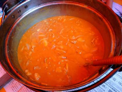 カレーはお肉と薄めに切った野菜を煮込み、カレールーを入れます。