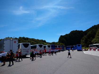 ジリジリとした酷暑に、ハチ高原を離れたことを実感します。また、たくさんの大阪市立小学校のバスが利用していました。
