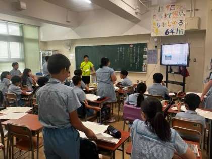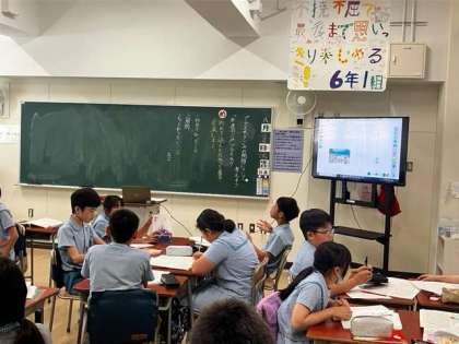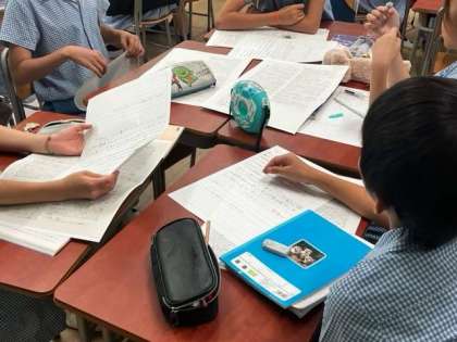6年生の国語、「『永遠のごみ』プラスチック」という説明文を読んでいました。初めて読んでの感想や疑問に思ったこと、もっと知りたくなったことをグループで共有して、考えを深めていました。
