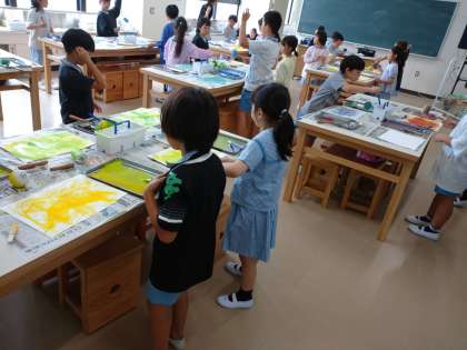 【3年生 図画工作】 公開日 2024/09/04 更新日 2024/09/04 3年生 図工室でローラーを使った描き方を学習しました。前回のドロッピングとはまた違う表現が子どもの想像力をかきたてます。 いいね(0)