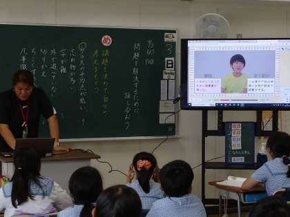 【5年生 国語】 公開日 2024/09/03 更新日 2024/09/03 お知らせ 「問題を解決するために話し合おう」の学習で、クラスの課題を決めて話し合います。今日は課題についての原因と解決するためにできることを自分の意見として、ふせんに書き出しました。そのあと、どのように話し合うか、モデル となる話し合う様子を動画を見て学びました。 いいね(0)