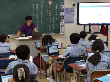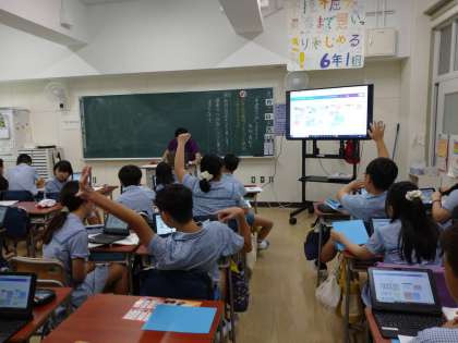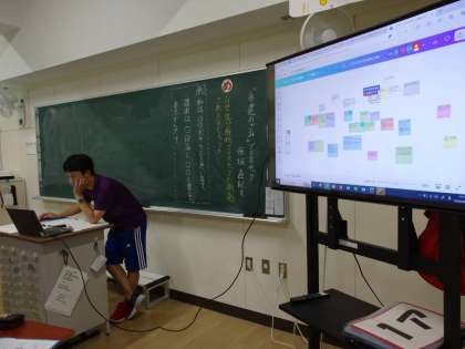 「なぜ、生分解性プラスチックが開発されたのか」という課題に対しての自分の意見を学習端末に入力し、クラスのみんなの意見を集約して分類しました。自分の意見と似ているところ、違うてころがよく分かりました。