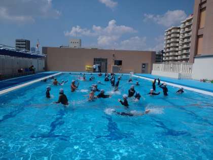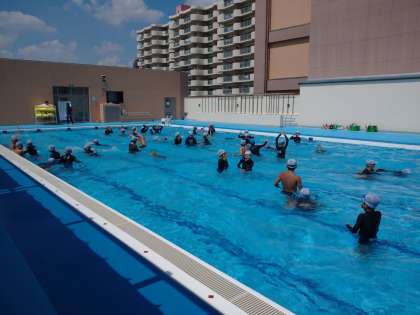 【5年生プールおさめ】 公開日 2024/09/09 更新日 2024/09/09 5年生 プール学習のまとめとして、クラス対抗水泳大会を行いました。この夏、練習を積み重ねて上達した泳法で泳ぎました。そのあとの自由の時間に、思い思いにプールでの活動を楽しみました。また来年も楽しんでください。 いいね(0)