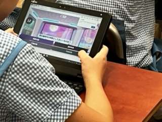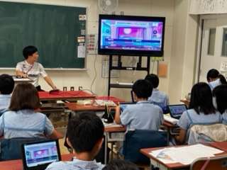 学習者端末を使って、歴史の復習をしていました。クイズ番組のような形で問題に取り組んでいたので、とても楽しそうに復習ができていました。