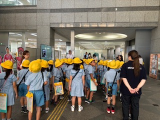 図書館へ向けて出発しました。 エントランスに集まって、見学開始です。