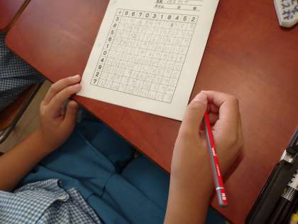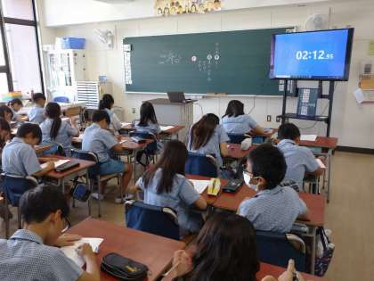 【5年生 朝の学習】 公開日 2024/09/13 更新日 2024/09/13 5年生 5年生が朝の学習に足し算の百マス計算に取り組んでいました。足し算と言っても、できるだけ短時間に計算していくのは、繰り上がりもあるので難しいです。一番速い児童で1分24秒のタイムでした。 百マス計算の良さは、集中力が鍛えられることです。眠たくても、頭が一気に覚めます。 いいね(0)