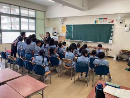 3年生 おはなし会 公開日 2024/09/17 更新日 2024/09/17 3年生 本日は3年生を対象に、「おはなし会」と題して、中央図書館より読み聞かせに来ていただきました。様々なジャンルの本を紹介していただき、子どもたちは本の世界に引き込まれていました。 いいね(0)
