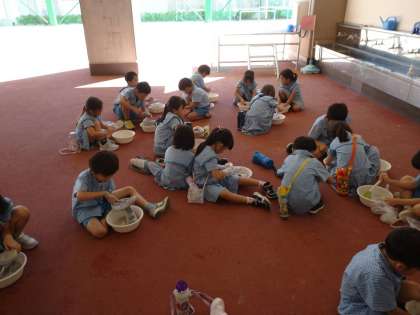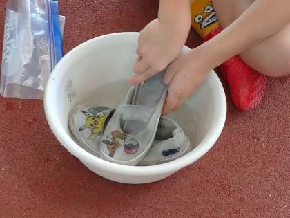 【1年生 生活】 公開日 2024/09/24 更新日 2024/09/24 1年生 「じぶんでできることをしよう」をテーマに1年生が上靴洗いにチャレンジしました。ブラシでゴシゴシ洗って、上靴がとてもきれいになりました。「手がしんどい〜」「真っ白になった!」「水がすごく汚れた」など感想を口にしていました。 これからも自分でできることをたくさん増やしてください。 いいね(0)