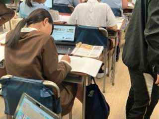 金閣と銀閣を建てた人物、建築様式、場所などをそれぞれを比較しながら、学習端末や教科書など、各々の方法で調べていました。