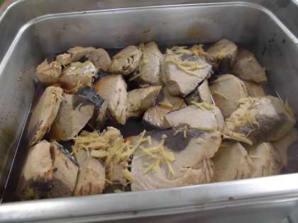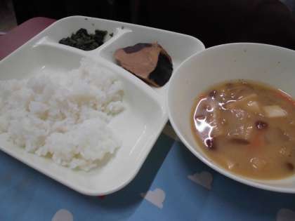 今日の給食には、かつおを煮たり、蒸したりして作る「なまりぶし」が登場しました。1年生の中では「初めて食べる」という声が出ていました。骨もなく、食べやすかったようです。