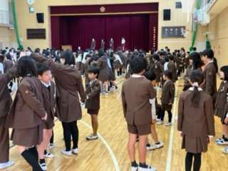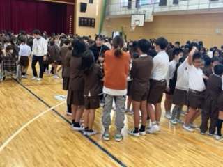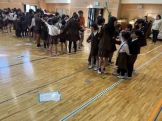 【児童集会】 公開日 2024/11/21 更新日 2024/11/21 お知らせ 「にんげん知恵の輪」 集会のグループで、にんげん知恵の輪を行いました。円になり、てをつなぐ際に、手を交差させたり、一人飛ばしで手をつないだりして協力して、解きほぐしていくゲームです。 声を掛け合いながら、笑顔で協力して取り組んでいました。 いいね(0)