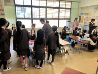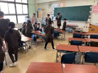 なかよし班で集まって、明日のなかよしまつりの打ち合わせを行い、まわり方などの確認をしていました。お店の方もまわる方も目一杯楽しんでほしいなと思います。
