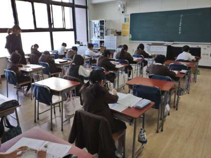 今日は2時間目に国語、3時間目に社会を行いました。これまで学習したことを思い出し、真剣に取り組んでいました。特に、3年生は初めて取り組んでいます。読む文章量も多いですが、落ち着いて問題を解いていました。