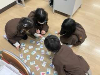 ことわざカルタとりにグループごとに取り組んでいました。読み札を聞くときの集中力はすごいものでした。楽しそうに、それでいて真剣に取り組んでいた姿が素敵でした。