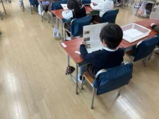 元気のよい音読が廊下から聞こえてきました。どのようにして子どもを守っているのか、問いの文とそれに対する答えに着目して取り組んでいました。