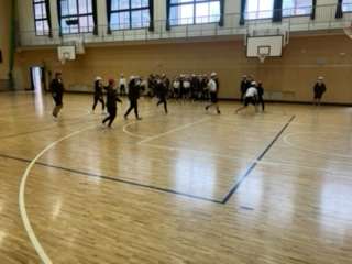 クラス対抗でバスケットボールを行っていました。自分のクラスがチャンスを作ったり、ゴールを決めたりすると大歓声があがっていました。一生懸命取り組む姿や友達の頑張りを自分のことのよう喜ぶ姿が見られ、大いに盛り上がっていました。