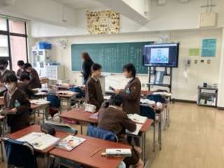 家での仕事について、「なぜ私ばかりが働かないといけないのか」と思っていた主人公が家族のために頑張ろうと思いを新たにする主人公の気持ちの変化について、交流しあっていました。さまざまな視点の意見が出て、考えが広まっていました。
