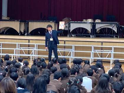 教頭先生からは、「三寒四温」という四字熟語を使って、季節が少しずつ進んでいき、暖かくなっていくという話がありました。そのほか、生活目標についてや学校を安心安全に過ごすために気をつけること等の話がありました。