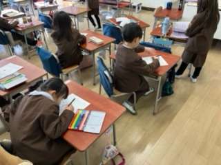 ヒヤシンスの芽が出た様子を観察カードにかいていました。
