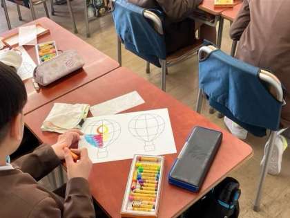 【3年生 図画工作】 公開日 2025/02/27 更新日 2025/02/27 3年生 カラフル気球作り 卒業生へ向けた掲示作成です。 3年生は、パスで気球の色つけをしていました。いろんな色を使ったり、フルーツをイメージしたりいろいろなアイデアを出して色をつけていました。 いいね(0)