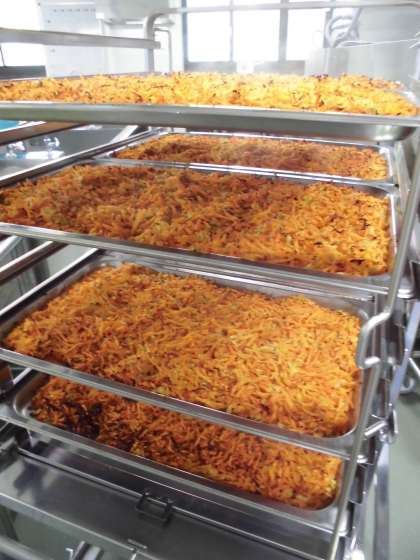 にんじんしりしり風は新献立でした。ささみ、にんじん、かつおぶしにみりんとうすくちしょうゆで味付けをして焼いています。