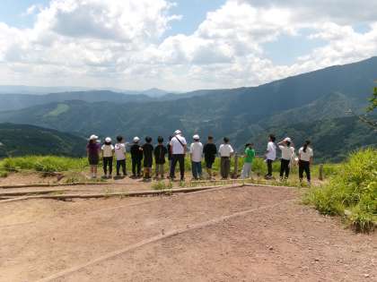 子どもたちは、とんぼを見つけたり、やまびこにチャレンジしたり、後からくる友たちをはげましたり。
