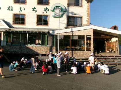 宿舎前で朝の集いをしたあと、
