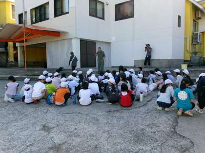 一緒に説明を受けた後、クラスに分かれて活動します。