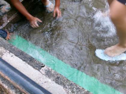 「魚つかみ&水遊び」と「焼き板」の活動の始まりです。