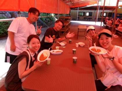 自然に囲まれ、みんなで協力して作ったカレーライスは格別でした。